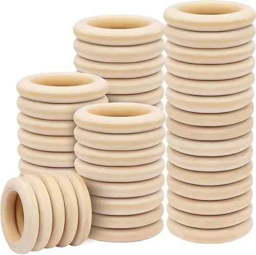 Material de madera natural de alta calidad: nuestros anillos de madera de 2 pulgadas están hechos de troncos cuidadosamente seleccionados, asegurando una superficie lisa sin puntos ásperos o nudos. Son saludables, respetuosos con el medio ambiente y seguros de usar Gran capacidad: con 100 anillos de madera de 2.165 in (2 pulgadas) para manualidades, tendrás suficiente para todas tus necesidades diarias, repuesto o reemplazo, y diferentes deseos de manualidades. Añade un toque único a tus proyectos de manualidades y accesorios de decoración del hogar Infinitas posibilidades de bricolaje: nuestros anillos de madera sin terminar para manualidades de 2 pulgadas te permiten diseñar libremente tus manualidades ideales. Pinta, mancha o embellece con cuerda de algodón para crear tus propios anillos de madera personalizados Elegante y versátil: estos anillos de madera de 2 pulgadas para manualidades tienen un temperamento clásico y artístico, perfectos para hacer cestas colgantes de plantas, campanillas de viento, coronas de Navidad, adornos de marcos de fotos pequeños y más. Deja volar tu creatividad Regalo perfecto para los amantes de las manualidades: sorprende a tu amigo amante de las manualidades con nuestro anillo de madera sin terminar de 2 pulgadas como regalo, o úsalos para hacer grandes proyectos. Tu amigo quedará impresionado con tu artesanía perfecta