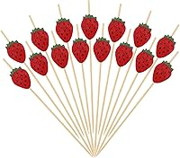 Honbay 100 piezas de palillos de bambú de fresa para cóctel, palillos de frutas divertidos, sándwich, aperitivo, brochetas para decoración de bodas,
