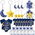 Huquary 150 piezas de regalos de fiesta de baby shower, luna estrella, llaveros Twinkle Twinkle Little Star Baby Shower Favor, tarjetas de