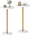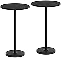 Round Side Table Set of 2, Tall Drink End Table for Small Spaces, Pedestal Style Martini Side Table in Living Room, Bedroom, Dormitory, Marble Black