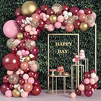 Kit de globos para cumpleaños, baby shower, boda, decoración de fiesta. 129 piezas. Globos de color burdeos, rosa, dorado y blanco. Para hacer