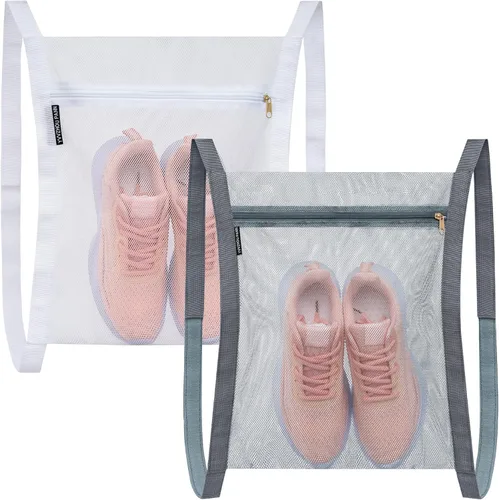Bolsa de secado de zapatos profesional: Esta bolsa de secado para zapatos protege la secadora de daños y permite que los zapatos se sequen rápida y uniformemente. La bolsa de zapatos para secadora puede fijar los tenis en la puerta de la secadora puede evitar eficazmente que los tenis rueden en la secadora y evitar hacer ruido. Se seca rápidamente: la bolsa de zapatillas para puerta de secadora está diseñada con bolsas de lavandería de malla de panal de abeja, lo que permite un amplio flujo de aire y se seca rápidamente para una limpieza óptima, las bolsas de red de zapatos para secadora pueden ser suficientes para usar o reemplazar en su vida diaria. Fuerte y reutilizable: el zapatero para secadora está hecho de poliéster de alta calidad, fuerte y resistente, portátil y reutilizable, no se deforma ni se rompe fácilmente. Bolsa de limpieza de zapatos para lavadora con cremallera de alta calidad para un fácil acceso a zapatos o ropa. Fácil de instalar: las bolsas de lavado para zapatos de lavandería no requieren herramientas adicionales, solo unos segundos para terminar la instalación. Combina con dos correas ajustables con cinta mágica, que se pueden fijar fácilmente a la secadora o lavadora durante el uso. Amplio uso: esta bolsa de lavandería de malla de panal mide 15.7 x 13.8 pulgadas, tamaño grande puede contener la mayoría de los tamaños de tus zapatos, como zapatos deportivos, zapatos de baloncesto, zapatos de fútbol, zapatos de baile, etc. La bolsa secadora de zapatos de tenis es adecuada para la familia, apartamento, lavandería, hotel u otros lugares.