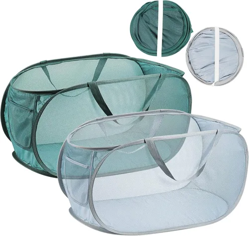 2 piezas de gran capacidad y bolsillo lateral: Dimensiones 22.8 × 14.2 × 14.2 pulgadas, espacio más grande puede contener más ropa, artículos deportivos, etc., y soporte máximo de carga de volumen de 75 L, suficiente para cumplir con su uso normal para lavado de ropa o almacenamiento. También proporciona un bolsillo lateral para artículos pequeños como calcetines, ropa interior. Diseño de moda con colores gris y esmeralda para que elijas Construcción resistente y diseño de malla transpirable: la cesta de lavandería utiliza tela gruesa de doble capa, tela de malla de alta densidad, costuras ajustadas y marco de acero atrevido, lo que la hace más resistente para un uso prolongado y no es fácil de romper. El diseño de malla permite que el aire circule, mantiene la ropa continuamente seca, deja que tu hogar esté limpio y ordenado Asas dobles reforzadas y uso versátil: el mango de nailon duradero, combinado con tecnología de costura apretada, hace que el mango sea firme y estable, fácil de llevar tu cesta de lavandería arriba y abajo escaleras con las asas de ambos lados. Esta cesta de lavandería no es solo para lavandería, sino también para guardar cualquier cosa, desde ropa, artículos deportivos y otras cosas. Es portátil que lo hace perfecto para el hogar, dormitorio, hoteles, campamento o viajes Diseño plegable y se expande rápidamente: nuestra cesta de lavandería plegable de malla cuenta con un diseño plegable, plegable y plegable, fácil de abrir y cerrar para transporte y almacenamiento, se puede plegar fácilmente en un pequeño círculo para ahorrar espacio cuando no está en uso, y se despliega en un segundo para un uso rápido. Por su pequeño tamaño después de colapsar, puedes llevarlo cuando vayas a viajar o acampar Diseño de apertura horizontal y gran regalo: la gran apertura horizontal también puede contener ropa o ropa de cama más gruesa. En comparación con la cesta de lavandería alta vertical, es menos probable que nuestra cesta de ropa sucia se vuelque, hace que sea más fácil recuperar artículos de lavandería y permite el transporte manos libres mediante el uso de brazos o correas de hombro para transportar artículos, lo que ahorra más fuerza. Es un gran y útil regalo para mujeres, novias, madres, etc