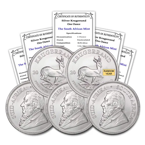 Pregunta sugerida sobre 2017 - Present (Random Year) South Africa 1 oz Silver Krugerrand Lot of (5) Coins Brilliant Uncirculated with Certificates of Authenticity 1 Rand ¿Este producto sí me sirve para lo que necesito?