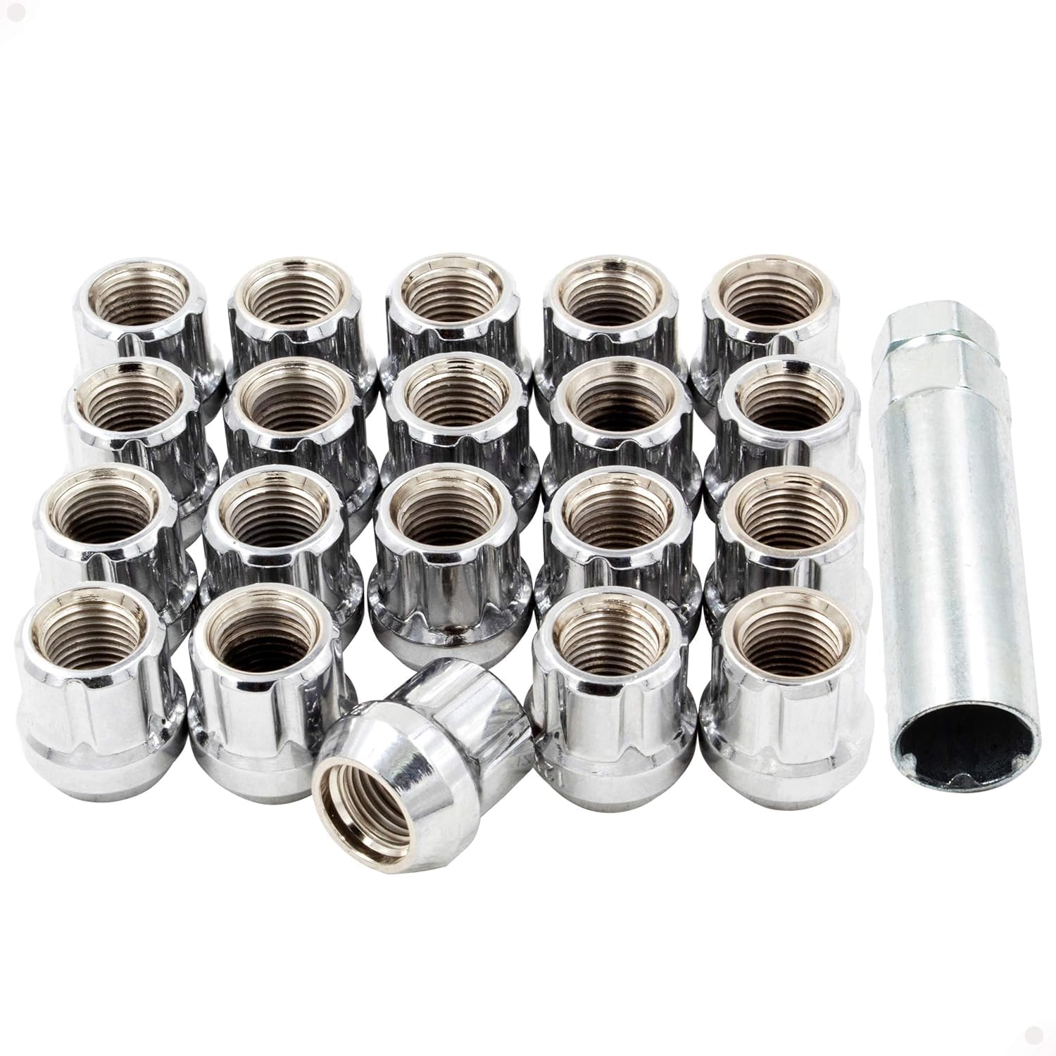 Wheel Accessories Parts 20 tuercas hexagonales de 9/16"-18 roscas de extremo abierto de 0.984 in, 1.00 pulgadas de largo, cromadas, 6 ranuras, para