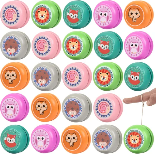 Demanda de múltiples cantidades: Hay 24 tipos de juguetes de yoyo de animales, un gran número de yoyo para satisfacer las necesidades diarias de usted, también se puede utilizar como relleno de bolsa de regalo de fiesta. Cada yoyo mide 2.0 pulgadas de diámetro y 1.1 pulgadas de ancho, por lo que es un regalo ideal en fiestas de animales. Diseño temático animal: nuestros juguetes de yoyo son vívidos, lindos y fáciles de operar, con varios colores y diseños de animales de la selva, como leones, elefantes, cocodrilos, tucán, monos, jirafas, pandas, leopardos, etc. Los yoyos de colores brillantes seguramente llamarán tu atención y te mantendrán entretenidos. Seguridad del material: estos yo yo de madera son respetuosos con el medio ambiente y no tóxicos, no se ensucian fácilmente, son juguetes duraderos, libres de escombros, y tienen bordes lisos, asegurando que pasen un buen momento para practicar sus habilidades de yoyo. Además, su diseño clásico con un eje fijo ayuda a responder el yoyo de vuelta a la mano con un simple tirón, ¡lo que lo hace perfecto para principiantes! Tamaño adecuado: el tamaño compacto de los juguetes yoyo hace que sea fácil de guardar, transportarlos y usarlos en momentos de aburrimiento. Los yoyos son un gran regalo alternativo a teléfonos celulares y pantallas mientras desarrollan sus habilidades motoras finas, coordinación ojo-mano y destreza manual. También es divertido usarlos con amigos y familiares. Regalos únicos: estos rellenos de yoyo son perfectos para regalos de fiesta, regalos de fiesta, relleno de bolsas de golosinas, regalos de cumpleaños, regalos de piñata, juguetes del cofre del tesoro del aula, regalos de huevos de Pascua y mucho más. Si eres profesor, también se pueden utilizar como recompensa en el aula o para recompensar a la familia por completar las tareas; también se pueden utilizar como decoración para fiestas; experimenta la sensación incorporando estos juguetes para apretar asombrosos en tu vida diaria.