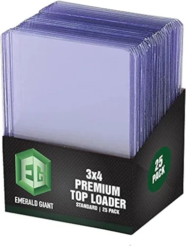 ? Protege tus tarjetas con los cargadores superiores de plástico duro de Emerald Giant. ? Estos protectores de tarjetas son de 3 x 4 pulgadas y están diseñados para adaptarse fácilmente a Pokemon, baloncesto, béisbol, hockey, fútbol, Yugioh, MTGO y muchas otras tarjetas coleccionables. ? Los cargadores rígidos están hechos con plástico de alta calidad que ayudará a proteger las tarjetas del agua, el polvo, los arañazos y la flexión. ? Su diseño transparente hace que toda la tarjeta sea claramente visible y su pequeño tamaño las hace perfectas para almacenar y transportar.