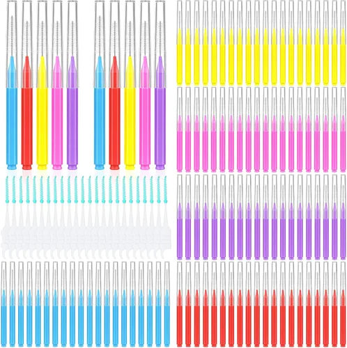 𝟯𝟬𝟬 𝗣𝗰𝘀, 𝟲 𝗧𝗮𝗺𝗮𝗻̃𝗼𝘀 𝗱𝗲 𝗰𝗲𝗽𝗶𝗹𝗹𝗼𝘀 𝗶𝗻𝘁𝗲𝗿𝗱𝗲𝗻𝘁𝗮𝗹𝗲𝘀: Recibirás 100 piezas de cepillos interdentales en 5 colores (cada color representa un tamaño) y 200 piezas de palillos interdentales. Los cabezales de cepillo de 6 tamaños son adecuados para diferentes huecos entre los dientes. Ya sea que tengas espacios estrechos o amplios entre los dientes, dientes desiguales o dientes apiñados, puedes encontrar los cepillos interdentales del tamaño adecuado. Hay un número suficiente para satisfacer tus necesidades de uso diario a largo plazo La herramienta de higiene oral definitiva: Logra una limpieza impecable con su efectividad inigualable para llegar a cada rincón y grieta de tus dientes. Con la flexibilidad bendable de 360° de los cepillos interdentales, este cepillo para brackets garantiza una limpieza completa, llegando sin esfuerzo a todas las áreas. Además, los cepillos para brackets vienen en varios tamaños para adaptarse a diferentes espacios entre dientes. ¡Actualiza tu rutina de cuidado bucal hoy y experimenta el increíble poder de limpieza de los cepillos interdentales! Cepillos interdentales con cerdas ultrasuaves y mango cómodo: los cabezales de cepillo ultrasuaves de los cepillos interdentales proporcionan una limpieza óptima, asegurando una experiencia de cuidado bucal suave pero completa. ¡Di adiós al dolor de las encías durante la limpieza! El diseño ergonómico del mango hexagonal ofrece un agarre firme, evitando cualquier deslizamiento o torpeza. Descubra el equilibrio perfecto entre comodidad y eficacia con nuestros cepillos interdentales, haciendo que el cuidado dental sea muy fácil. Cepillo dental versátil para uso interno: Perfecto para todos los dientes y espacios, incluyendo aquellos con hilos dentales para aparatos. Con su amplia gama de aplicaciones, estos cepillos interdentales son adecuados para todos, independientemente de su edad o sexo. Logre una higiene bucal impecable al llegar fácilmente a las áreas más difíciles y mantener una sonrisa saludable. Di adiós a las partículas de alimentos y la acumulación de placa, y aprovecha la comodidad y eficacia de los cepillos interdentales entre los dientes. Solución de higiene dental portátil: Este cepillo de dientes ligero está diseñado para ser portátil, haciendo que los hilos dentales para brackets sean fáciles de llevar y usar sin esfuerzo. Puedes llevar nuestros hilos dentales para brackets a cualquier lugar, ya sea a la escuela, de viaje o al trabajo. Su comodidad garantiza que puedas mantener los dientes limpios y brillantes en cualquier momento y en cualquier lugar. Abrace la libertad de un cuidado dental sin esfuerzo, y experimente una limpieza refrescante que mantiene sus dientes brillando intensamente.