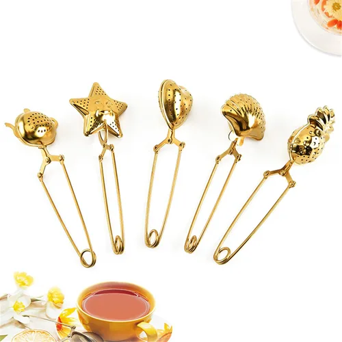 5 unidades de bolas de té a presión, concha, corazón, estrella, piña, tetera, filtros de té, colador de té de acero inoxidable, infusor de té de