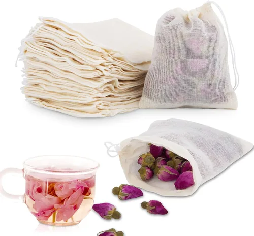 Material ecológico de alta calidad: nuestras bolsas con cordón están hechas de algodón natural de alta calidad, duradero y sin ningún olor. Lavable y reutilizable para reducir el uso de bolsas de plástico y evitar desperdicios.Nota: el material de la bolsa de algodón es relativamente delgado para mantener la transpirabilidad y practicidad, por favor revise cuidadosamente la imagen para obtener detalles antes de comprar Amplias aplicaciones: utiliza nuestras bolsas con cordón para guardar manualidades, dulces, granos de café, hojas de té y pequeños regalos, también se pueden utilizar para filtrar queso, vino y leche de conservación. Las bolsas también mantienen sus artículos limpios y ordenados, por lo que son esenciales para una vida bien ordenada. También puedes hacerlo tú mismo con todo tipo de patrones. Nota: la bolsa de algodón con cordón no es gruesa como el material de arpillera. Si los estampa con tinta/tinte, coloque algo dentro para evitar sangrado. Diseño de cordón: estas bolsas de tela de algodón están diseñadas con cordones, lo que te permite sellar o abrir fácilmente la bolsa, fácil de apretar y usar, para evitar fugas. Espacio suficiente para almacenar algunos artículos pequeños como nueces, galletas, chips de chocolate y dulces. Bueno tanto para el hogar como para las necesidades de cocina en la vida diaria. Versátil: estas bolsas de muselina son un fantástico regalo para personas que aman vivir saludables. Estas bolsas de algodón con cordón son perfectas para leche casera de nueces, almendras y soja, yogur, queso, jugos de verduras o frutas, café frío, cerveza casera, té. Lo que obtendrás: tendrás 50 bolsas de muselina a granel que vienen con color natural, esta bolsa de té de café mide aproximadamente 3.9 x 3.1 in/3.94 x 3.15 pulgadas, que se pueden utilizar en varias ocasiones, tales como: bolsas de regalo, bolsas de joyas, guardar manualidades, jabones, velas, hoja de té, granos de café, especias, hierbas, flores u otros artículos pequeños, remojar medicamentos. vino inal, filtrado escoria, sopa hirviendo, elaboración de té ect