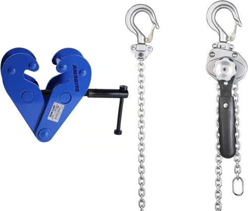 El polipasto de cadena ultraligero de clase premium minilarga, soporta más de 100 veces su propio peso. (con altura de elevación estándar), fácil manejo con bajo esfuerzo físico en la palanca. Fácil ajuste mediante posición de rueda libre. La abrazadera de haz Amarite I está diseñada para la mayoría de los usos industriales y de construcción. Las abrazaderas de viga tienen una apertura de mordaza de 3" a 9" y proporcionan un punto de aparejo confiable y flexible para numerosas aplicaciones. Fácil de instalar y ajustar a mano.