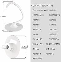 K45DH - Mezclador auxiliar Kitchenaid de repuesto para gancho de masa Ksm90 K45, revestimiento de 4.5/5 cuartos de galón, compatible con Kitchenaid