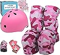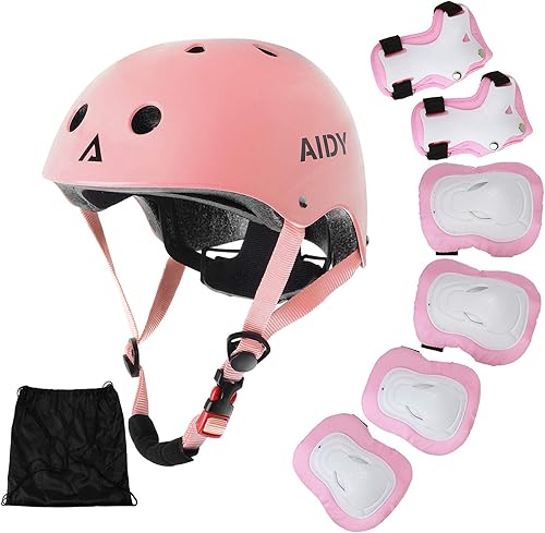 AIDY Casco de bicicleta para niños, casco ajustable para niñas y niños, rodilleras, coderas, muñequeras, conjunto de equipo de protección