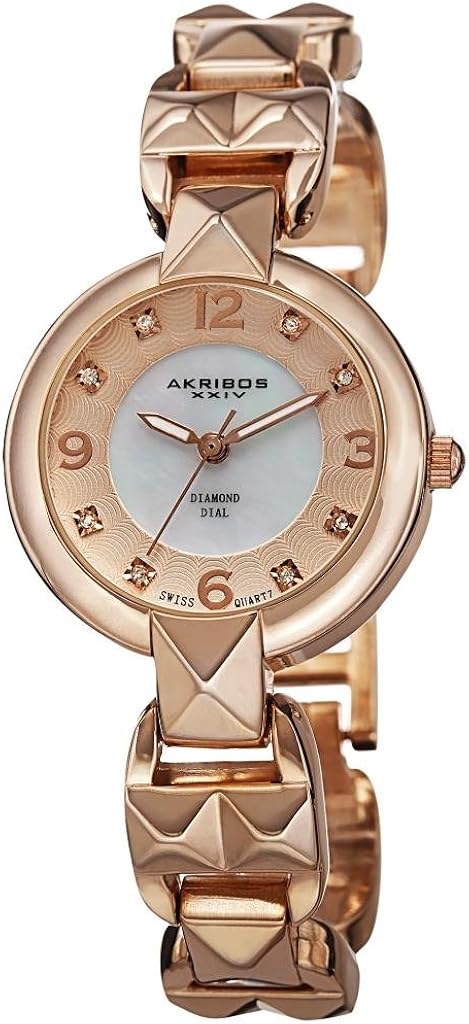 ¿Para qué sirve Akribos XXIV AK755 - Reloj de cuarzo suizo para mujer, esfera de perla con pulsera de corte pirámide?