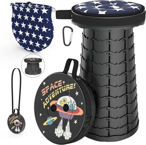 ALEVMOOM Taburete telescópico con cojín giratorio, taburetes plegables portátiles para camping, taburete plegable retráctil, capacidad más