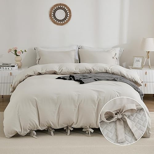annadaif Juego de funda de edredón beige Queen (90 x 90 pulgadas), 3 piezas (1 funda de edredón, 2 fundas de almohada), juego de funda de edredón