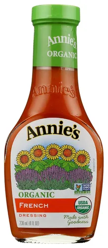 Aderezo para ensaladas: disfruta del sabor dulce y ácido del aderezo francés Annie's Certificado orgánico: delicioso aderezo orgánico para ensaladas para vestir esas verduras LLENO DE SABOR: Añade un poco de sabor picante con un delicioso aderezo francés VEGANO: Toma una botella de aderezo vegano para ensaladas hecho con ingredientes de calidad CONTIENE: 8 fl oz