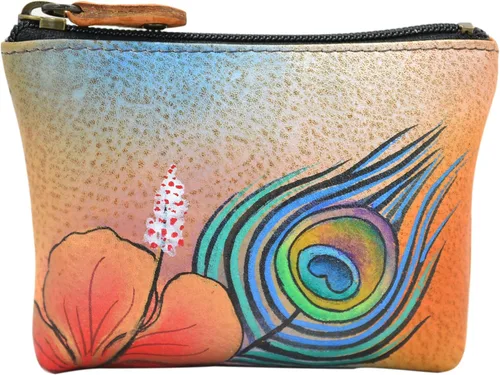Anuschka Monedero de cuero para mujer Cuero suave genuino Arte original pintado a mano
