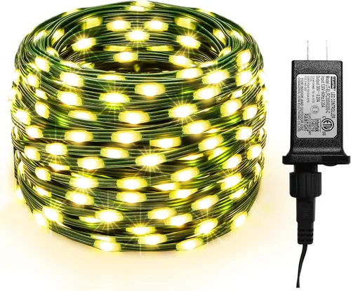 Guirnalda de luces de Navidad extralargas: la tira de luces de Navidad para exteriores tiene 200 luces LED de 66 pies y cable de extensión de 9.8 pies con cuentas de luz LED de alta calidad y cable de goma verde, estas luces de Navidad son suficientes para la mayoría de tus arreglos de escenas interiores y exteriores para crear un ambiente festivo cálido. 8 modos de iluminación y funciones de memoria: combinación, en ondas, secuencial, persecución/flash, desvanecimiento lento, parpadeo/flash y constante. Presione directamente el botón del transformador para cambiar el modo. Después de apagar la alimentación, los ajustes se memorizarán automáticamente después de que la alimentación se encienda nuevamente, y no hay necesidad de restablecer. Diseño ligero: un diseño de nueva generación, brillante y ligero. La cadena de luces LED tiene una clasificación de impermeabilidad IP67, y la cadena de luz se puede sumergir en agua para emitir luz. Evita que el polvo entre en las cuentas de la lámpara, no solo se puede utilizar en interiores, sino que también se puede utilizar al aire libre, incluso en días lluviosos, nevados o tormentosos. Amplia gama de usos: las luces LED de Navidad para exteriores no se sobrecalientan durante mucho tiempo, y puedes tocar de forma segura las cuentas de la lámpara mientras trabajas. La cuerda verde suave se puede hacer fácilmente en la forma que quieras y envolverla alrededor, perfecta para patio interior al aire libre, hogar, jardín, césped, patio, escaleras, puerta delantera, árbol de Navidad, decoración de vallas. Satisfacción del cliente: la tira de luces largas de Anycosy promete que si tienes algún problema con el producto, no dudes en decirnos, te daremos una solución satisfactoria en el tiempo más rápido.