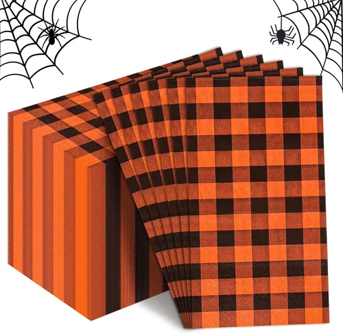 Lo que obtendrás: 100 hojas de servilletas de papel para invitados están contenidas en el juego, diseños delicados que lo hacen adecuado para su uso en fiestas y mesas de comedor, y gran cantidad que son suficientes para satisfacer sus diferentes necesidades. Diseño naranja y negro: con el tema de Halloween, estampado con cuadros naranja y negro, delicado y único, grandes suministros para uso diario y fiesta. Material seguro: hecho de papel de buena calidad, suave, absorbente y degradable, no es fácil de romper, mantiene tus platos y mesas limpios mientras que es completamente seguro para el medio ambiente. Uso adecuado: la servilleta mide 4.3 x 7.9 in/4.3 x 7.9 pulgadas cuando está plegada y 13.0 x 15.7 in/13 x 15.7 pulgadas cuando se despliega, lo que es adecuado para las mesas, para decorar tus mesas de fiesta y ayudarte a liberar de la carga de la limpieza al mismo tiempo. Amplia aplicación: adecuado para fiestas de Halloween, celebraciones y otras ocasiones, también se puede utilizar como servilletas ordinarias para actividades diarias. Ideal para decoración de mesa y limpieza, perfecto para suministros de comedor.