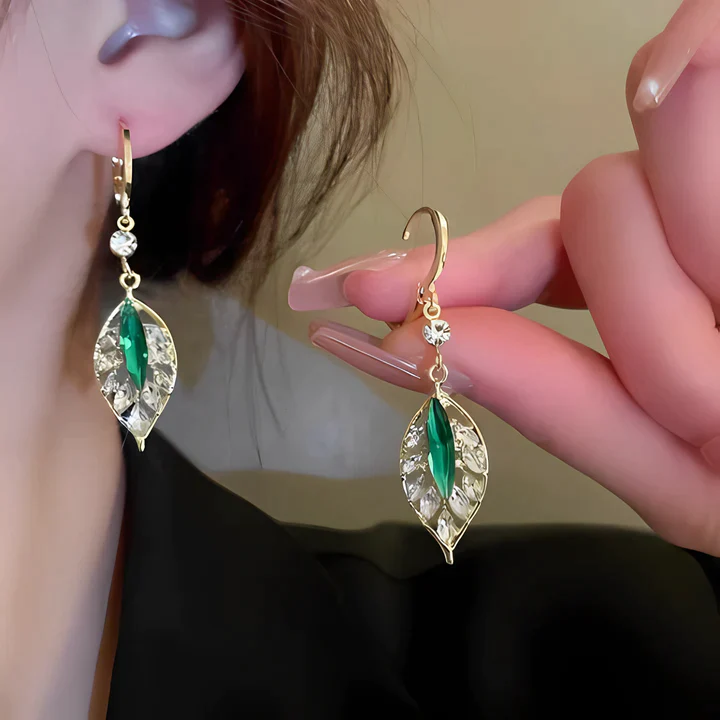 ARETES TIPO HOJA VERDES ZIRCONIA