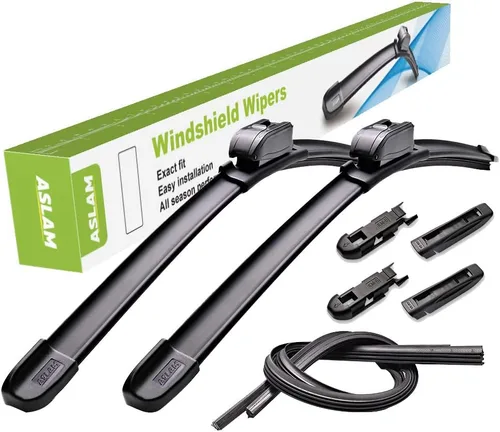 ASLAM Limpiaparabrisas para todas las estaciones, tipo M, 20 + 20 pulgadas, adaptadores multifuncionales y repuestos reemplazables, doble vida útil