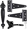 Kit de herrajes para puerta resistente, con pestillo de puerta de autobloqueo, bisagras de puerta de correa en T de 6 pulgadas y tirador de manija
