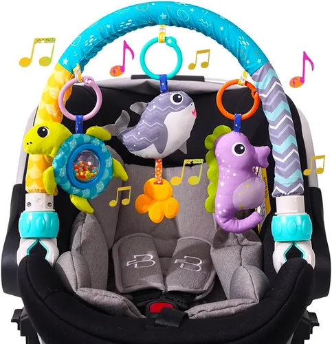 Versátil juguete de arco para bebé: nuestro móvil de arco de cochecito de bebé está diseñado con 3 lindos widgets de animales que se pueden desmontar individualmente: ballena con caja de música, tortuga con sonajeros, caballo de mar con chirriador bb. Múltiples texturas y sonidos, brillantes y coloridos para promover el desarrollo del bebé, mantener a tu bebé ocupado y entretenido. Alta calidad y seguro: la barra de juguete para bebé está hecha de plástico ecológico y tela de alta calidad, libre de BPA e inodoro, animales lindos y texturizados para que el bebé toque, tire, agarre, juguetes de arco absolutamente seguros para bebés de 0 a 6 meses. Juguetes de desarrollo y aprendizaje: a medida que el recién nacido crece, el juguete móvil de cuna con clip es ideal para estimular el desarrollo visual y auditivo, mejorar el reconocimiento de color y la coordinación ojo-mano, enseñar al bebé a reconocer animales e historias relevantes para entrenar la curiosidad y la imaginación, un juguete interactivo imprescindible entre padres e hijos. Fácil de instalar: el móvil musical para moisés para niños y niñas tiene dos abrazaderas ajustables que se pueden aflojar y apretar, lo que lo hace fácil de fijar en una variedad de cochecitos, gorilas, cunas, cunas, asiento de automóvil, columpio de bebé, cuna, etc. Recomendado para todos los padres: este cochecito de actividad infantil con temática oceánica está empaquetado en una bolsa delicada, ligero para llevar a cualquier lugar, permite que el bebé juegue sobre la marcha y en casa. Regalo perfecto para futuros padres, gran opción para regalo de baby shower, regalo de cumpleaños, Navidad, regalo de Año Nuevo.