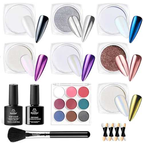 Pregunta sugerida sobre Beetles - Kit de polvo de uñas cromado metálico, set de polvo de gradiente de uñas holográfico con efecto espejo y pegatinas adhesivas de arte ¿Este producto sí me sirve para lo que necesito?