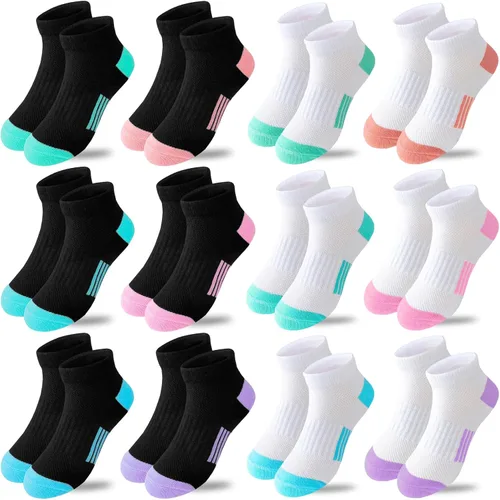 Bemeol Calcetines para niñas, 12 pares de calcetines deportivos de algodón para niños pequeños y grandes