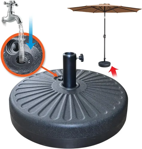 Tamaño: 20.0 x 12 pulgadas (diámetro x alto) Hecho de material HDPE duradero, resistente a todas las inclemenciones; tubo de acero, Se puede llenar con agua (28L) o arena (o ambos); Fácil de usar, limpiar, transportar y almacenar Los insertos de plástico en la parte superior de la tubería de acero se ajustan a postes de paraguas de Φ1.5'' (1.496 in) o Φ1.9'' (1.890 in). La perilla ajustable en el tubo de acero para soportar una mayor estabilidad de resistencia del poste del paraguas