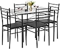 FDW Juego de mesa de comedor clásica de 5 piezas, mesa superior de vidrio con marco de metal y 4 sillas modernas rectangulares, juego de mesa de