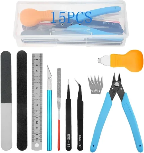 Bigstone Kit de herramientas de construcción de 15 piezas Gundam para automóviles, aviones, edificios, Gundam, modelos de robots, reparación