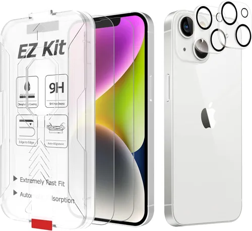 Bioton Paquete de 2 + 2 protectores de pantalla de vidrio templado compatibles con iPhone 14 (6.1 pulgadas, 2022) con protector de lente de cámara