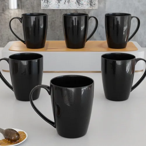 Black Shine - Juego de 6 tazas de té de cerámica, aptas para microondas, tazas de té de cerámica (9.5 fl oz cada una)