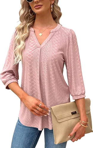 Blusas de manga 34 para mujer, con ojales, estilo casual, cuello en V