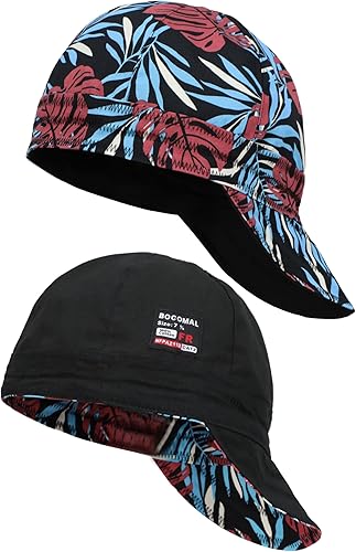 BOCOMAL Gorro de Soldadura Resistente al Fuego CAT2 de Peso Medio con Estampado, Gorras de Soldador de 6 Paneles - Juego de 2