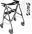 Stander Space Saver Andador plegable, andador plegable ligero con asiento para personas mayores y adultos, ayuda de movilidad de 4 ruedas con ruedas