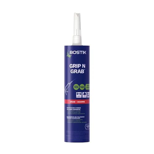 Bostik Grip N Grab es un adhesivo de agarre instantáneo, basado en tecnología avanzada de polímeros híbridos, específicamente diseñado para disminuir el tiempo de instalación de aplicaciones verticales. La alta fuerza de unión inicial Grip N Grab proporciona la capacidad de agarrar materiales pesados rápidamente sin deslizamiento, eliminando la necesidad de soporte secundario en la mayoría de las aplicaciones. Grip N Grab cura bajo la influencia de la humedad para formar un caucho elástico duradero, que se adhiere a la mayoría de los materiales de construcción en una variedad de aplicaciones. Esta fórmula 100% impermeable y de bajo olor está diseñada tanto para proyectos interiores como exteriores. Grip N Grab está libre de disolventes, tiene un tiempo de curado rápido e incluso se puede utilizar en superficies húmedas o húmedas. Grip N Grab se puede pintar con pinturas a base de látex y se cura rápidamente. No hay contracción, es libre de burbujas y no es corrosivo hacia los metales. Tiene un bajo contenido de COV con un olor mínimo y está libre de isocianatos, disolventes y siliconas. Lo mejor de todo es que está fabricado en los Estados Unidos