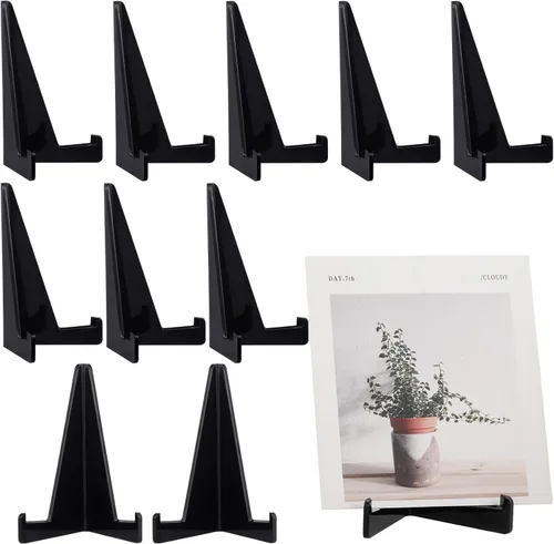 Largo tiempo de servicio: estos soportes de caballete acrílicos están hechos de material acrílico de calidad con un aspecto negro y un tacto suave, pueden soportar la prueba del tiempo sin agrietarse y se pueden aplicar durante mucho tiempo. Nota: Estos son adecuados para colocar artículos ligeros y delgados, no se recomienda para colocar artículos más pesados Diseño triangular constante: el mini caballete para exhibición está diseñado con el diseño triangular moldeado por inyección, lo que hace que este caballete acrílico sea aún más estable para mostrar tu colección, agradable para que elijas Tamaño de uso adecuado: cada caballete acrílico mide aproximadamente 3.4 x 2.5 in/ 3.4 x 2.5 pulgadas, que es un tamaño adecuado para que lo uses, ligero, fácil de almacenar y transportar, suficiente para tu repuesto o reemplazo, confirma el tamaño que necesitas antes de comprar Cantidad suficiente: recibirás 10 piezas de mini caballetes de plástico, la cantidad es abundante para satisfacer tu uso diario y reemplazo, y están bien empaquetados para evitar que se rompan durante el transporte Amplia gama de aplicaciones: estos mini soportes de caballete son adecuados para colocar monedas, tarjetas de mesa, tarjetas de visita, teléfonos celulares, galletas, fotos, colecciones, modelos en miniatura, medallas, platos pequeños, hebilla de cinturón, CD, arte, etc., pero no se aplican a libros, puedes usarlos de acuerdo a tus necesidades