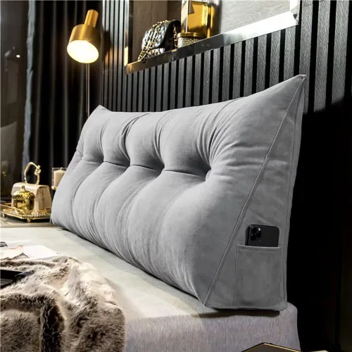 Almohada triangular para cabecero: la funda de almohada está hecha de tela de terciopelo de felpilla de alta calidad, el inserto está relleno de fibra de algodón perlado, excelente densidad y alta resistencia que puede darte una comodidad suave y duradera cuando te apoyas contra la cabecera. Para quitar la funda de almohada, simplemente cierra la almohada, retira la funda y desenrolla los botones. Paquete de aspiradora: incluye 1 almohada para cabecero. La cabecera de almohada viene comprimida para el paquete. Después de recibir la almohada de cama, retira el envoltorio y dale palmaditas ligeramente a toda la almohada varias veces, deja que se esponjen. Tardará entre 24 y 48 horas en recuperarse por completo. Sobre las arrugas, puedes ponerlo en la secadora o al sol durante 1-2 días. Luego verá las almohadas de sofá cama tal como hemos descrito. Buen apoyo al ver la televisión o leer: no solo sirve para el propósito de una cabecera decorativa, sino que también es funcional para apoyarse. Esta almohada de descanso puede funcionar como almohada de sofá, almohada de respaldo, almohada de elevación de piernas, almohada de rodilla, almohada de cuña de cabecero, etc. Se utiliza como cabecera de cama para máxima comodidad cuando trabajas en una computadora portátil, ves la televisión, sentado y jugando en la cama. Lavable a máquina: nuestras almohadas cuentan con un práctico cierre de cremallera y botones adjuntos, no solo crean una forma de almohada más dinámica, sino que también hacen que la funda sea desmontable y lavable. Cuando llegue el momento de limpiar, mete este juego en la lavadora para un rápido estímulo. Satisfacción garantizada: valoramos a nuestros clientes y sus comentarios. Ponte en contacto con nosotros en cualquier momento si tienes un problema con tu producto. Haremos todo lo que esté a nuestro alcance para solucionar el problema en cuestión para que pueda comprar con confianza