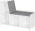 RiverRidge Rincón de lectura para niños y banco de almacenamiento de cubos blancos con asiento acolchado cómodo y organizador de juguetes, color