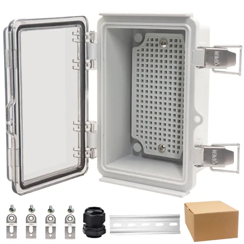 Fácil de personalizar e instalar: la caja eléctrica impermeable para exteriores incluye una placa de montaje que te permite montar tu placa o dispositivo en la caja del proyecto fácilmente. También viene con 4 soportes de pared de acero inoxidable que se pueden usar para colgar la caja de conexiones en las paredes. Cuando necesites conectar cables, puedes usar los racores de cable de 1/2" NPT que se incluyen. Esta caja de conexiones se puede perforar y dar forma fácilmente sin agrietarse, ayudándote a personalizar cualquier proyecto sin esfuerzo. [Cierres de acero inoxidable y uso al aire libre]: Esta caja exterior resistente a la intemperie con junta de sello negro y cierres de acero inoxidable 304, resistente y duradera, protege contra la infiltración de agua y polvo, ideal para su uso en entornos exteriores. Grado IP67: grado impermeable IP67, lo que significa que es hermético al polvo y protegido de los desafíos de humedad hasta el chorro de agua, mantiene todo tu equipo eléctrico seguro y seco incluso en entornos hostiles. [Más resistente]: hecho de plástico ABS de alta calidad que tiene un tiempo de servicio más largo y superior en resistencia al impacto. La caja de conexiones resistente puede ofrecer una buena protección para sus proyectos al aire libre. 【Riel DIN de aluminio incluido】: La caja de montaje exterior viene con un riel DIN de aluminio, es conveniente para instalar sus tipos de controladores eléctricos. 【Aplicación versátil】: Esta caja de exterior está hecha de plástico ABS, recibe bien las señales WiFi, ideal para interruptor, router, extensor WiFi, fuente de alimentación, controlador de bomba, proyectos de bricolaje para el hogar, etc. Esta versatilidad te da más flexibilidad para hacer tus propios proyectos.