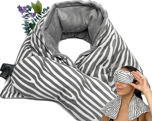 Calentador de cuello con almohadilla térmica para microondas y máscara de ojos con peso, almohadilla térmica grande apta para microondas