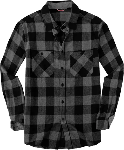 Camisa casual de franela de manga larga para hombre, ajuste regular, con botones y dos bolsillos