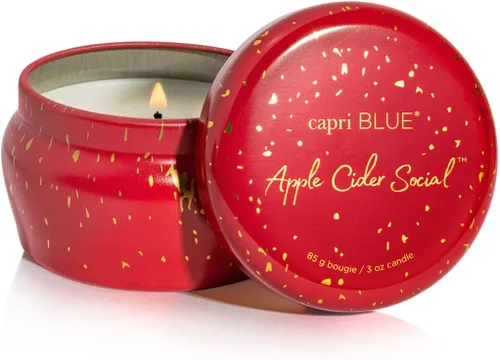 Capri Blue - Vela en mini tarro de metal, sidra de manzana (85 g): ¡Acurrúcate en el otoño con esta dulzura! Nuestra mini lata de sidra de manzana Social Glimmer está llena de notas picantes de manzana crujiente, canela, pera jugosa con clavo rallado y nuez moscada fresca. ¡Esto es justo lo que necesitas para disfrutar del clima otoñal! Nuestras velas de soja totalmente naturales para el hogar perfumadas con Apple Cider Social están formuladas con una mezcla de cera de alta calidad con un toque de cera de parafina de grado alimenticio para crear velas de larga duración con una fragancia fuerte y una combustión limpia. Estas bonitas velas en frasco son maravillosos regalos de inauguración de la casa, regalos de Navidad o regalos para la decoración del hogar. --- Consejos para quemar tus velas de lujo: permite siempre que la parte superior de las velas Capri Blue se licue completamente antes de soplarlas para evitar que se formen túneles. Mantén la mecha recortada a 1/4" y recorta la mecha antes de la primera combustión. Advertencia: No dejes caer escombros, como cerillas o recortes de mecha en la cera. Mientras se queman, nunca coloque sus velas decorativas sobre superficies irregulares o sensibles ni las deje sin supervisión Apaga cuando quede ½ pulgada de cera para evitar exponer la parte inferior de la mecha. ¡Reutiliza estos tarros de vela de estaño de maneras nuevas y emocionantes! --- Acerca de nosotros: Capri Blue es una intersección donde la moda se une a la fragancia. Inspirado en las tendencias de moda contemporáneas, Capri Blue crea nuevos y emocionantes productos de fragancia para el hogar para cada temporada.