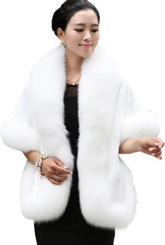 Caracilia Women Luxury Faux Fur Coat Jackets Wrap Cape Shawl for Wedding Party