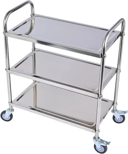 Carrito de 3 estantes de acero inoxidable Amarite, 190.5 kg, 1 mm de espesor, con ruedas para servir, carro de servicio para el hogar, estante de