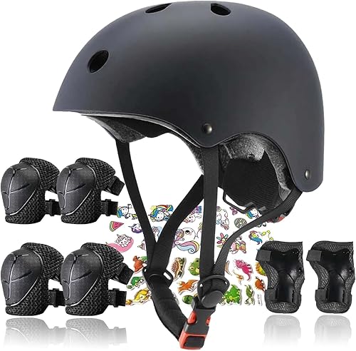Casco para niños, cascos de patineta para niños pequeños de 2 a 14 años, niños y niñas, con rodilleras y coderas, muñequeras, para patines