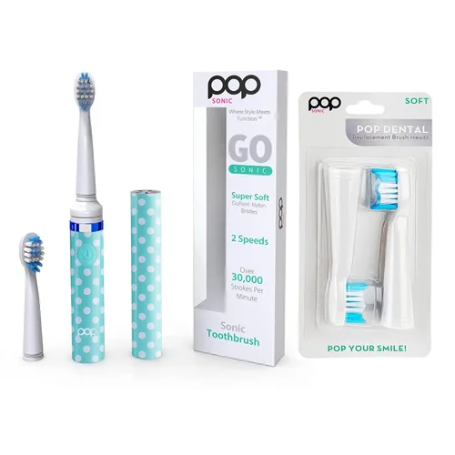 Cepillo de dientes con batería para adultos y niños: incluye cepillo de dientes + paquete adicional. Mantén tus dientes limpios y respira frescos todo el día con nuestro cepillo de dientes Black Go Sonic de Pop Sonic. Este cepillo de dientes de viaje Sonic de 7 pulgadas de alto cuenta con 2 velocidades con vibraciones de 15000 a 30000 pinceladas por minuto. Diseño ergonómico: nuestro cepillo de dientes de viaje delgado y compacto se simplifica con un diseño patentado ligero de una tapa a presión. El cepillo de dientes funciona con pilas para adultos y niños viene con un cepillo de repuesto. Adecuado para adultos y niños mayores de 8 años. Cerdas de alta calidad: este cepillo de dientes premium tiene cerdas de nailon DuPont de larga duración para proporcionar una limpieza completa con solo unos pocos golpes. Las cerdas de nailon de nuestros cepillos de dientes de batería son lo suficientemente suaves para encías sensibles pero lo suficientemente flexibles para áreas de difícil acceso. Da golpes perfectos: nuestros cepillos de dientes alimentados por batería para adultos y niños están contorneados con 2 velocidades de alta calidad (15,000 y 30,000 pinceladas por minuto). Este cepillo de dientes de viaje está programado con un marcapaser cuadrante y un temporizador de 2 minutos con un motor avanzado y batería para eficiencia energética. Incluye todo lo que quieres: el cepillo de dientes funciona con pilas incluye un cepillo de dientes Go Sonic y un cabezal de cepillo de repuesto, una batería AAA y un manual de instrucciones (idioma español no garantizado). Pop Sonic toma garantía de calidad por un período de 1 año.
